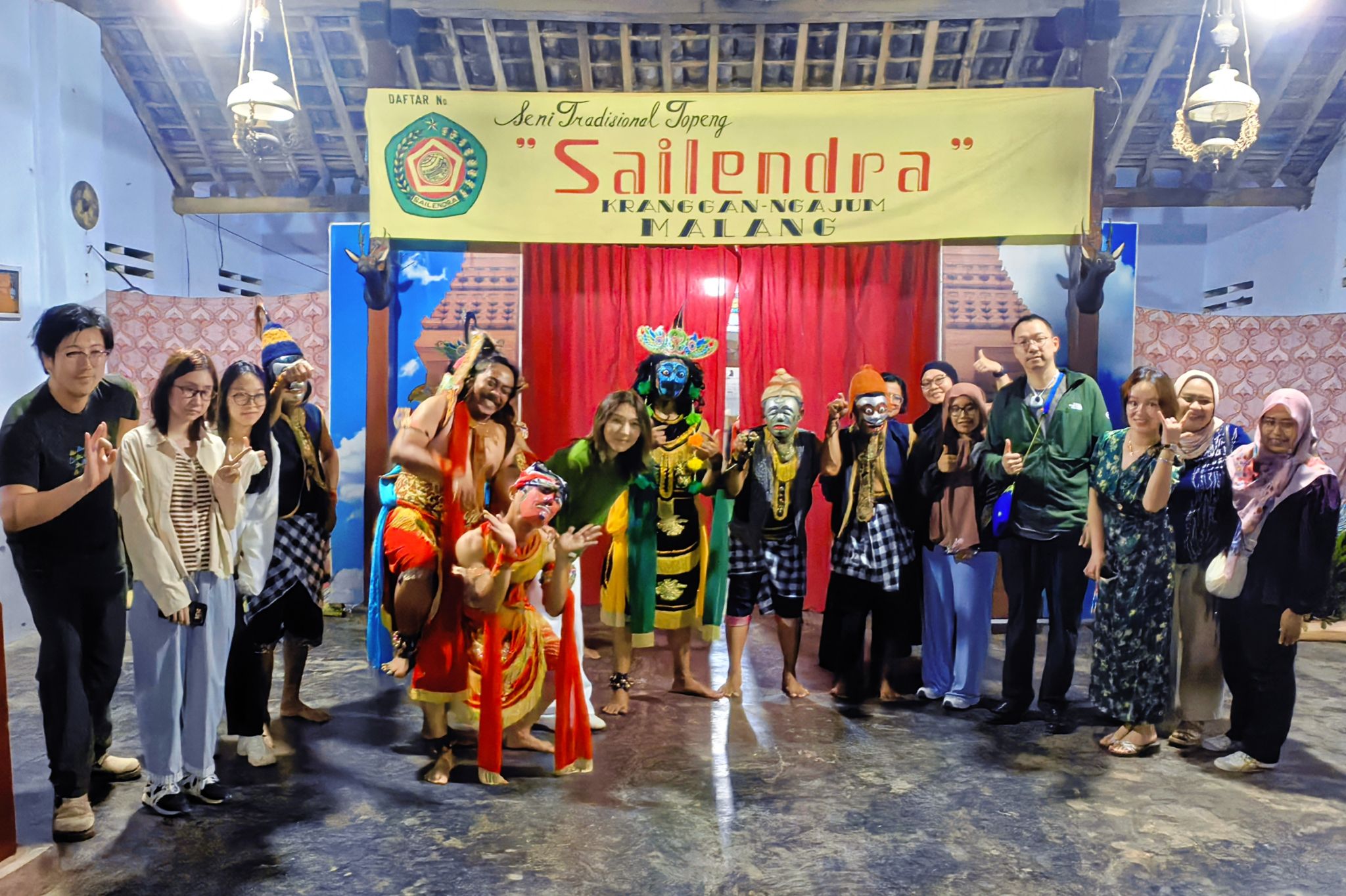 为欢迎远道而来的师生,恩加朱姆村村民特别组织了传统文化表演。当地乐师演奏了甘美兰(Gamelan)音乐,舞者表演了托彭(Topeng)面具舞,让师生们近距离感受到印尼传统艺术的感染力。