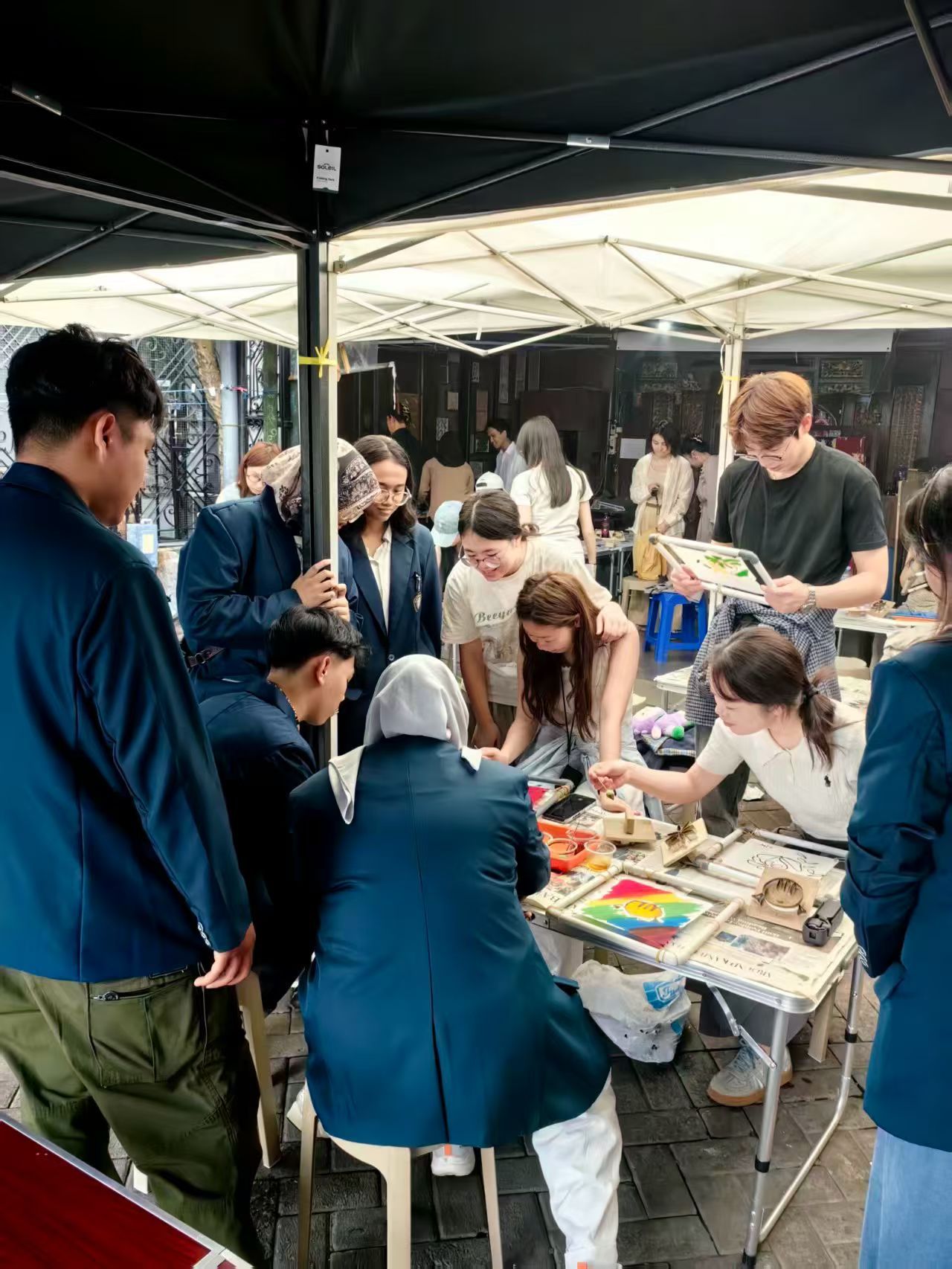 文化体验从联合国教科文组织人类非物质文化遗产——蜡染(Batik)开始。师生们前往玛琅当地知名的蜡染工坊,在印尼匠人的指导下绘制图案,体验以蜂蜡防染、天然植物染料浸染的传统工序。初次尝试的学生们发现,控制蜂蜡的流量和温度并不容易,“第一笔下去手是抖的,”一位学生回忆,“虽然师傅听不懂英语,但很有耐心,一直笑着帮我们。”