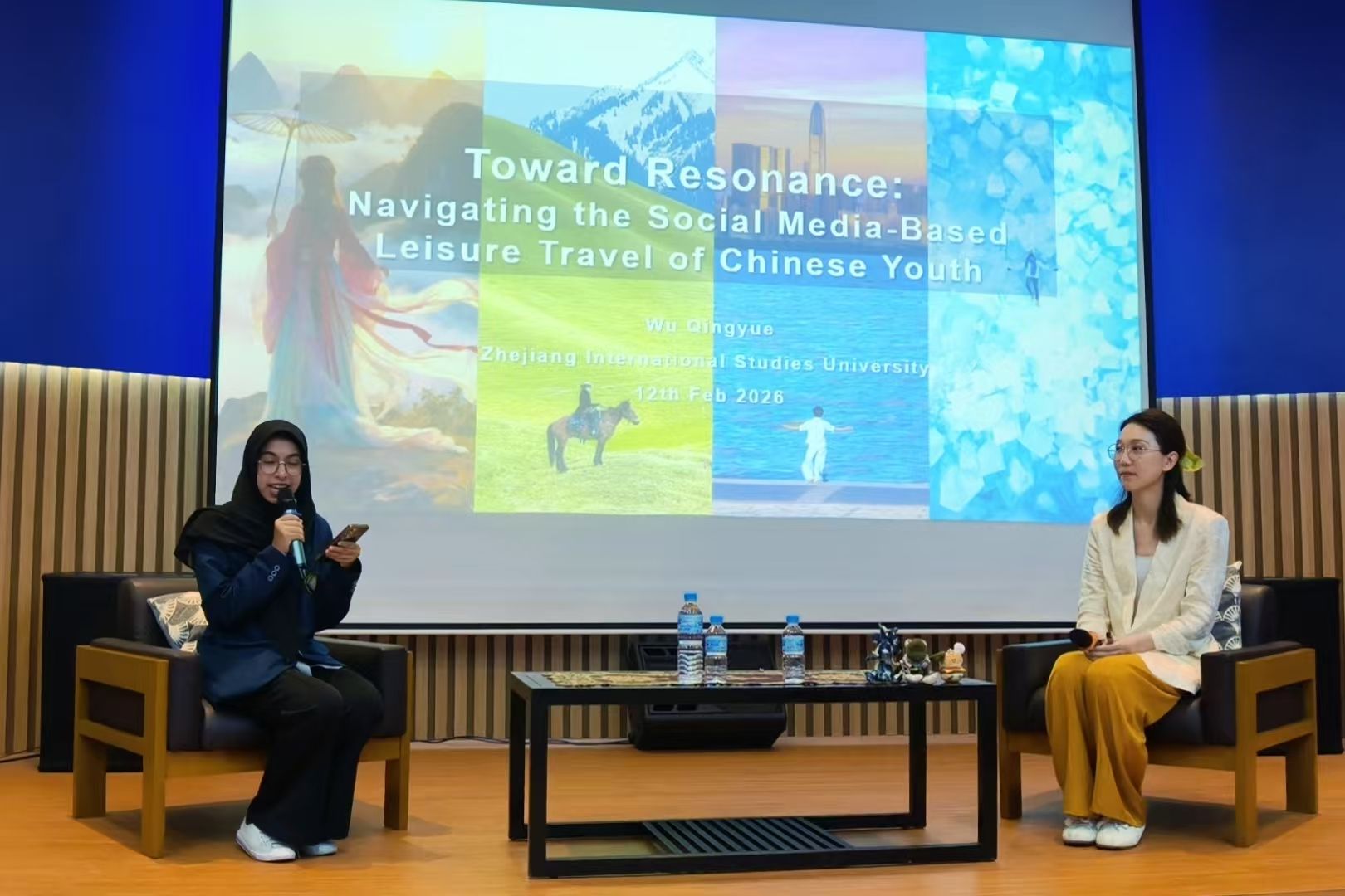 2月14日上午,举行了专题学术交流会。我院王雪逸老师分享了《透过谁的眼睛?反思乡村旅游中的表征问题》(Through Whose Eyes?Rethinking Representation in Rural Tourism),从女性主义与表征理论视角,对乡村旅游发展中的文化呈现提出了批判性思考。吴清月老师以《走向共鸣:中国青年的社交媒体休闲旅行研究》(Toward Resonance: Navigating the Social Media-Based Leisure Travel of Chinese Youth)为题,深入探讨了数字时代青年旅游行为的新模式与社会互动机制。引发了现场师生的热烈讨论与深入交流。