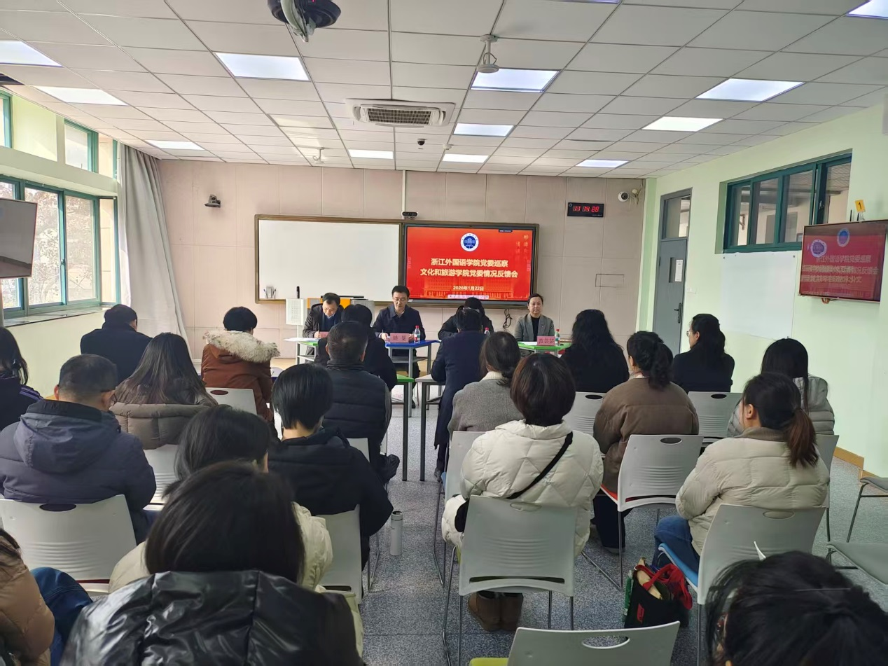 1月22日,学校召开浙江外国语学院党委巡察文化和旅游学院党委情况反馈会。副校长、校党委委员姚旻,校巡察办副主任、校纪委副书记、纪检监察室主任顾黎明,巡察组组长陆卫斌、副组长马逸斐,巡察组成员及文旅学院班子成员、全体教职工参加了反馈会。
